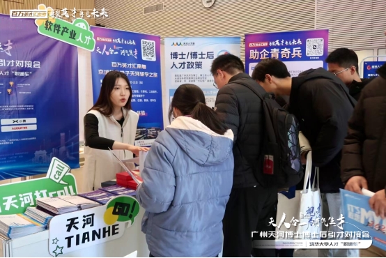 为传递满满引才诚意,天河量身打造“天河人才专属包”,从求职便利到生活保障全链条发力:现场同步开放专属政策咨询群,实时答疑解惑,后续岗位动态、政策更新将第一时间触达人才;不仅有“终极offer”,还有“实习体验券”和“深度研学游”,让人才在签约前就能与天河“亲密接触”:“助企青奇兵”实习计划同步宣发,发布10家优质企业实习岗,即时收集学生意向,后续将组织优秀学子来穗深度参与企业技术研发、项目实践,提前融入天河产业生态;“学子到天河”研学活动定向邀约软件领域学子,计划组织参访小鹏汽车、中望软件、中移湾区研究院等区内重点企业,走访天河路商圈与绿美城央空间,让学子实地感受天河产业实力与“老城烟火+新城潮流”的独特城市魅力。